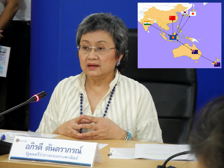 นางอภิรดี ตันตราภรณ์ รัฐมนตรีว่าการกระทรวงพาณิชย์ เปิดเผยว่า ผลการประชุมรัฐมนตรีความตกลงหุ้นส่วนทางเศรษฐกิจระดับภูมิภาค(อาร์เซ็ป) ครั้งที่ 4 ประกอบด้วยสมาชิกอาเซียนและคู่เจรจา 6 ประเทศ คือ จีน เกาหลีใต้ ญี่ปุ่น อินเดีย ออสเตรเลีย และนิวซีแลนด์ โดยที่ประชุมรับทราบภาพรวมความคืบหน้าของการเจรจาอาร์เซ็ปที่จะมุ่งไปสู่การเปิดเสรีอย่างรอบด้าน พร้อมเร่งสรุปสาระสำคัญความตกลงให้ได้ภายในสิ้นปี 2559 โดยให้เป็นความตกลงที่มีคุณภาพสูง ครอบคลุมการเปิดเสรีอย่างมีนัยสำคัญ ทั้งการค้าสินค้า การค้าบริการ การลงทุน และความร่วมมือทางเศรษฐกิจอย่างรอบด้าน ทั้งนี้ ในที่ประชุมรัฐมนตรีได้กำชับให้คณะเจรจาของประเทศสมาชิกพยายามเจรจาด้วยความยืดหยุ่นเพื่อให้ได้ข้อสรุปที่น่าพึงพอใจสำหรับทุกฝ่าย ภายในการประชุมคณะกรรมการเจรจาการค้าอาร์เซ็ปที่จะมีขึ้นระหว่างวันที่ 12-19 สิงหาคมนี้