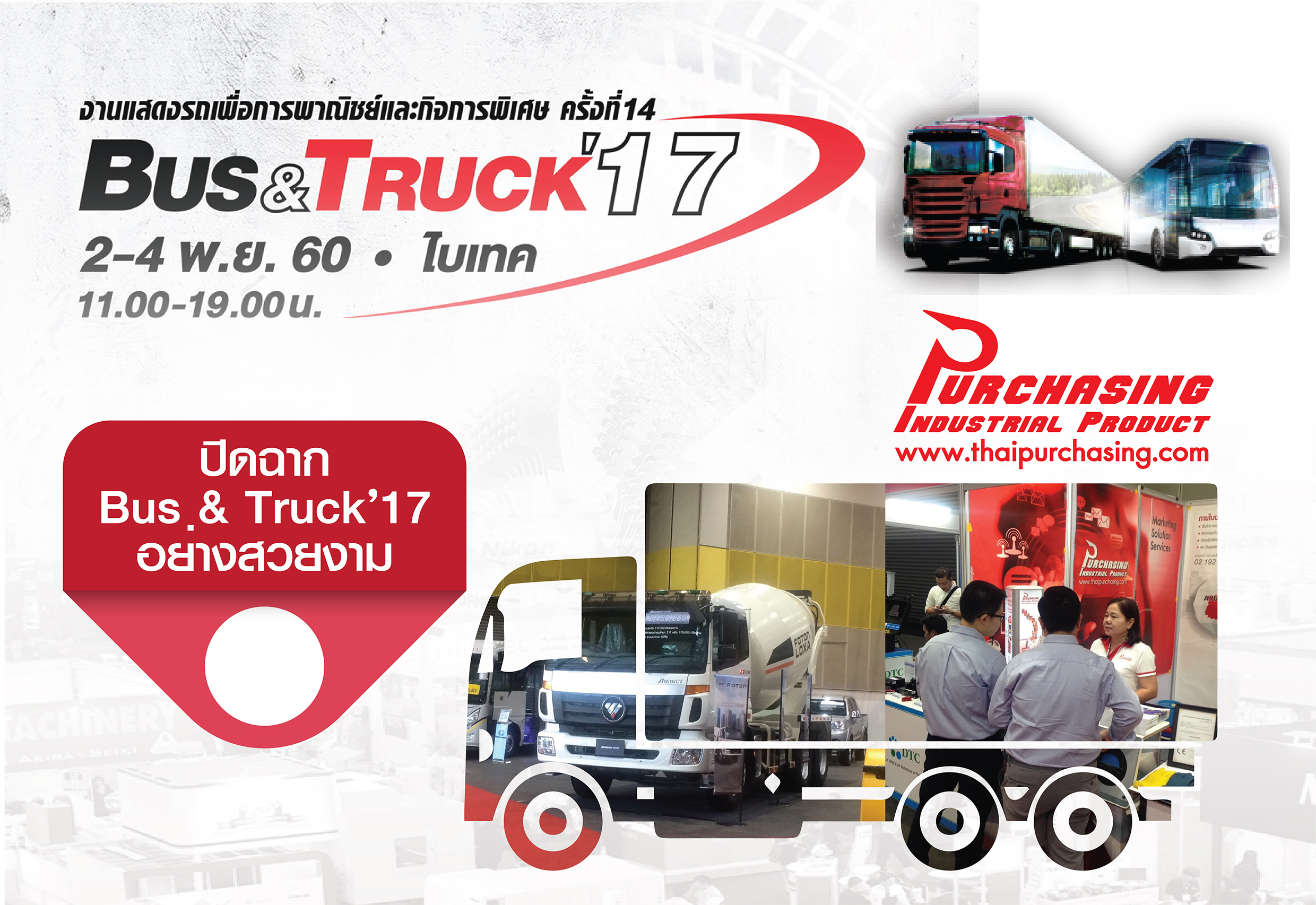 จบไปเป็นที่เรียบร้อยแล้ว กับงาน BUS & TRUCK 2017 งานแสดงเทคโนโลยีรถเพื่อการพาณิชย์และกิจการพิเศษ เป็นงานระดับภูมิภาคอาเซียนที่รวบรวมเทคโนโลยีล้ำสมัยและนวัตกรรม จากบรรดาผู้ผลิตและผู้จำหน่ายทั่วทุกมุมโลก เพื่อเป็นเวทีสำหรับผู้ประกอบการในธุรกิจรถเพื่อการพาณิชย์อย่างครบวงจร นอกจากนี้ยังช่วยสร้างโอกาสในการเชื่อมโยงบุคคลในวงการ ได้พบปะแลกเปลี่ยนความรู้และประสบการณ์ เพื่อสร้างเครือข่ายรวมถึงเพิ่มสมรรถภาพทางธุรกิจ โดยงานจัดขึ้น ในวันที่ 2 – 4 พฤศจิกายน 2560 เวลา 11.00 – 19.00 น. ณ ฮอลล์ EH106 ศูนย์นิทรรศการและการประชุมไบเทค