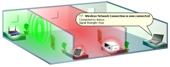 2. หาฮวงจุ้ยที่เราท์เตอร์สามารถให้สัญญาณได้แรงที่สุด เราท์เตอร์ไม่ได้เป็นแก็ดเจ็ตที่สวยหรูดูดี ดังนั้นผู้ใช้ส่วนใหญ่ชอบวางมันหลบๆ ซ่อนๆ ไว้ แต่มันเป็นเรื่องที่ผิดพลาดมากๆ เพราะเราท์เตอร์เป็นอุปกรณ์"ขี้ร้อน"และมันต้องการที่ทีมีอากาศถ่ายเทสะดวก ดังนั้นควรวางมันในที่เปิดโล่ง อย่างเช่น ตรงกลางบ้าน พยายามให้อยู่ห่างจากผนัง และสิ่งกีดขวาง อย่างเช่น ตู้เอกสารที่ทำจากหล็ก ไม่ควรวางเราท์เตอร์ให้เสาสัญญาณชิดติดกำแพง หรือออกไปนอกอาคาร เพราะจทำให้สูญเสียสัญญาณครึ่งหนึ่งที่ส่งออกไป แถมยังอาจจะกลายเป็นการสร้างจุดบอดของสัญญาณภายในบ้านซะด้วยซ้ำ ฮวงจุ้ยที่ดีทีสุดสำหรับการติดตั้งเราท์เตอร์คือ ที่สูงดีกว่าที่ต่ำ โดยเฉพาะบ้านสองชั้น ถ้าจะให้ง่ายหน่อยแนะนำให้คุณวางเราท์เตอร์ไว้เหนือชั้น หรือบนตู้สูง และไม่อยู่ชิดติดสิ่งกีดขวางที่อาจบล็อคสัญญาณได้
