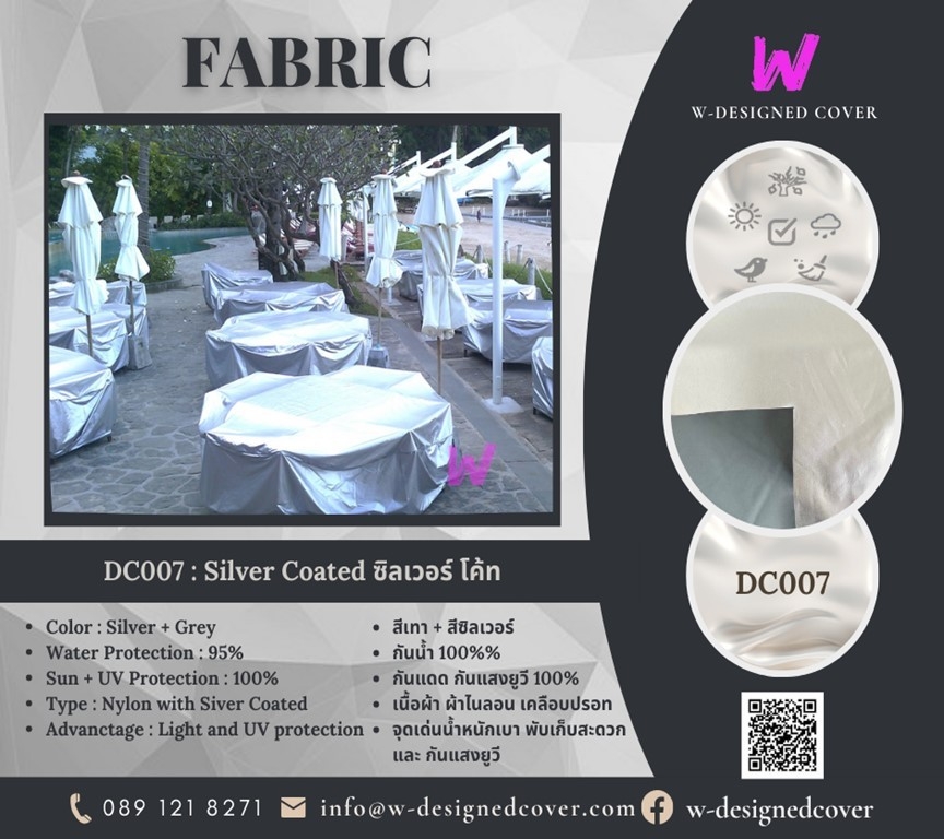 คำอธิบาย : ดับเบิ้ลยู ดีซายด์ โคเวอร์ส W-DESIGNED COVERS เริ่มดำเนินธุรกิจด้านการผลิตผ้าคลุมเฟอร์นิเจอร์ตั้งแต่ปี พศ. 2556 โดยได้รับความไว้วางใจจากผู้ประกอบการโรงแรมห้าดาว โครงการบ้านหรู และ วิลล่าตากอากาศ มาเป็นเวลานาน.