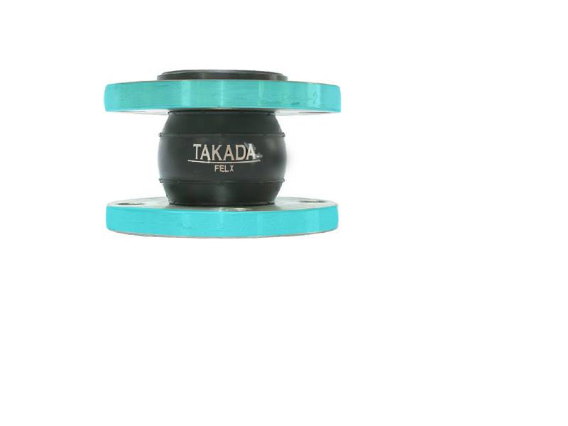 คำอธิบาย : TAKADAFLEX Series TFS and PTFS are ideal in heating and air conditioning system. Series TFS and PTFS connectors have EPDM cover , providing excellent resistance to sunlight , ozone , oxidation and resistant to damage from dropping oil. The unit has EDDM tube which is good for hot & cold water service and mild chemicals. The fully molded Single Sphere design provides reater flexibility , thus protecting mating flanges , especially PVC and fiberglass types. The steel flanges easily rotate on the bellows , which makes it easier to line up the bolt hole during installation when mating flanges are out of line. With a temperature rating of -20 C to 100 C, the standard sizes range from 1” to 12” I.D. can be with the working pressure at 300 psi and 228 psi, size 14” to 24” have working pressure at 150 psi.