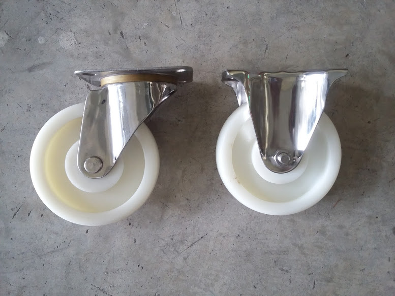 เป็นล้อไนล่อน สลักและน็อต เป็นสแตนเลสทั้งหมด แม่เหล็กดูดไม่ติด