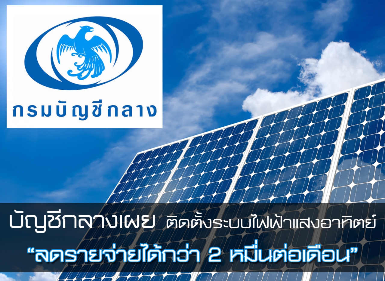 บัญชีกลางเผย ติดตั้งระบบไฟฟ้าแสงอาทิตย์ ลดรายจ่ายได้กว่า 2 หมื่นต่อเดือน
