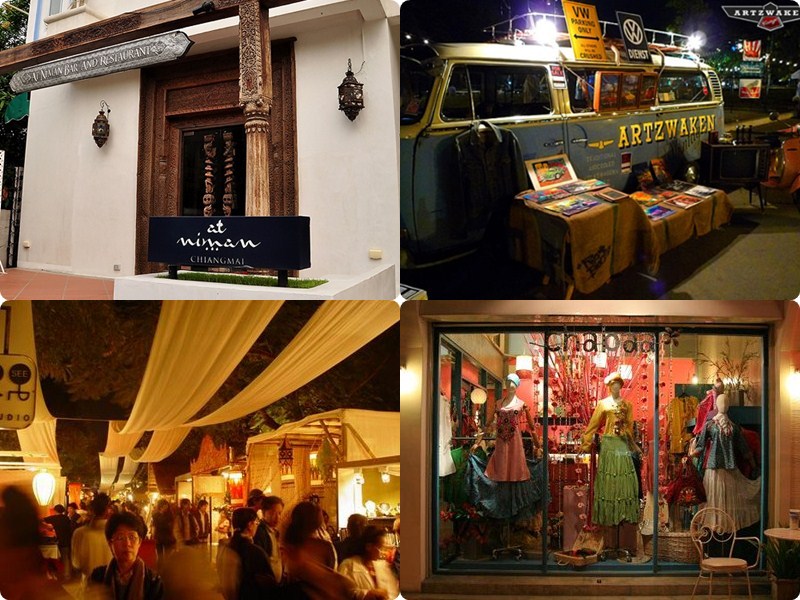 ถนนที่มีของทำมือมาวางขายกันเยอะมาก ส่วนใหญ่จะเจาะกลุ่มวัยรุ่น อย่างถนนนิมมานเหมินทร์ ใครที่อยากมาซื้อมาดูเทรนด์อะไรใหม่ๆแนะนำให้มาที่นี่เลย ที่เที่ยวเชียงใหม่อย่างถนนเส้นนี้ มีร้านค้ามากมาย ทั้งอาหารการกิน สินค้าตกแต่งบ้าน ร้านชื่อดังแบรนด์เนมต่างๆอย่าง ไอเบอรี่ หรือจะเป็นร้านที่ผมมองว่าเก๋สุดๆ จัดวางได้สวยงามสุดๆอย่างร้าน สุริยันจันทราที่รวมของตกแต่งบ้านสุดแนว ที่แม้แต่ผู้คนในกรุงเทพยังสั่งยังมาซื้อกันที่นี่เลยหละ แถมยังมีร้านเจ๋งๆแนววัยรุ่นมากมาย ร้านเล่าก็เป็นอีกร้านนี่เหล่านักเขียนนั่วชิวเขียนหนังสือส่วนตัวกันที่นี่ สรุปว่าหากมาเที่ยวที่เชียงใหม่ถนนนิมมานเหมินทร์เป็นที่ที่ห้ามพลาดเลยหละ