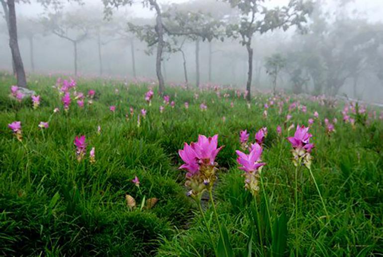 ต่อด้วย สวนผักปลอดสารพิษลุงไกร มีผักสดๆ หลายชนิดให้เลือกซื้อหากัน เช่น ผักสลัด ผักกาดหอมเป็นส่วนใหญ่ มีหลากหลายสายพันธุ์ ผักของที่นี่สด สะอาด อร่อย มีคุณภาพสูง จากนั้นไปต่อกันที่ วังน้ำเขียวฟาร์ม เป็นศูนย์เพาะพันธุ์เห็ดเมืองหนาว มีทั้งเห็ดหอม เห็ดหัวลิง เห็ดหลินจือ เห็ดโคนญี่ปุ่น เห็ดนางฟ้าภูฏาน เห็ดนางฟ้า และเห็ดนางนวล เปิดให้เยี่ยมชมการเพาะเห็ดแบบออร์แกนิก นอกจากนี้ยังสามารถขับรถไปเข้าไปเที่ยวในอุทยานแห่งชาติเขาใหญ่ได้อีกด้วย 2. ทุ่งดอกกระเจียว จ.ชัยภูมิ ฤดูฝนเป็นฤดูกาลแห่งการเติบโตของพรรณพันธุ์นานาชนิด หนึ่งในนั้นคือ ดอกกระเจียว ดอกไม้ไทยๆ สีชมพูอ่อนที่สวยงามไม่แพ้ดอกไม้พันธุ์ต่างประเทศเลย ทุกๆ ปีในช่วงหน้าฝนจะมีนักท่องเที่ยวเดินทางมาชมทุ่งดอกกระเจียวกันอย่างล้นหลาม