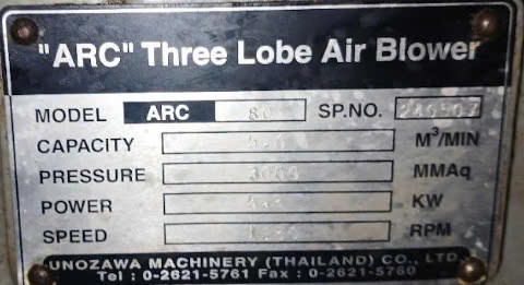 ขอราคา Rotary blower UNOZAWA GUMI Type : ARS65 Pulley no.5 (5.5Kw) 1 Unit ครับ