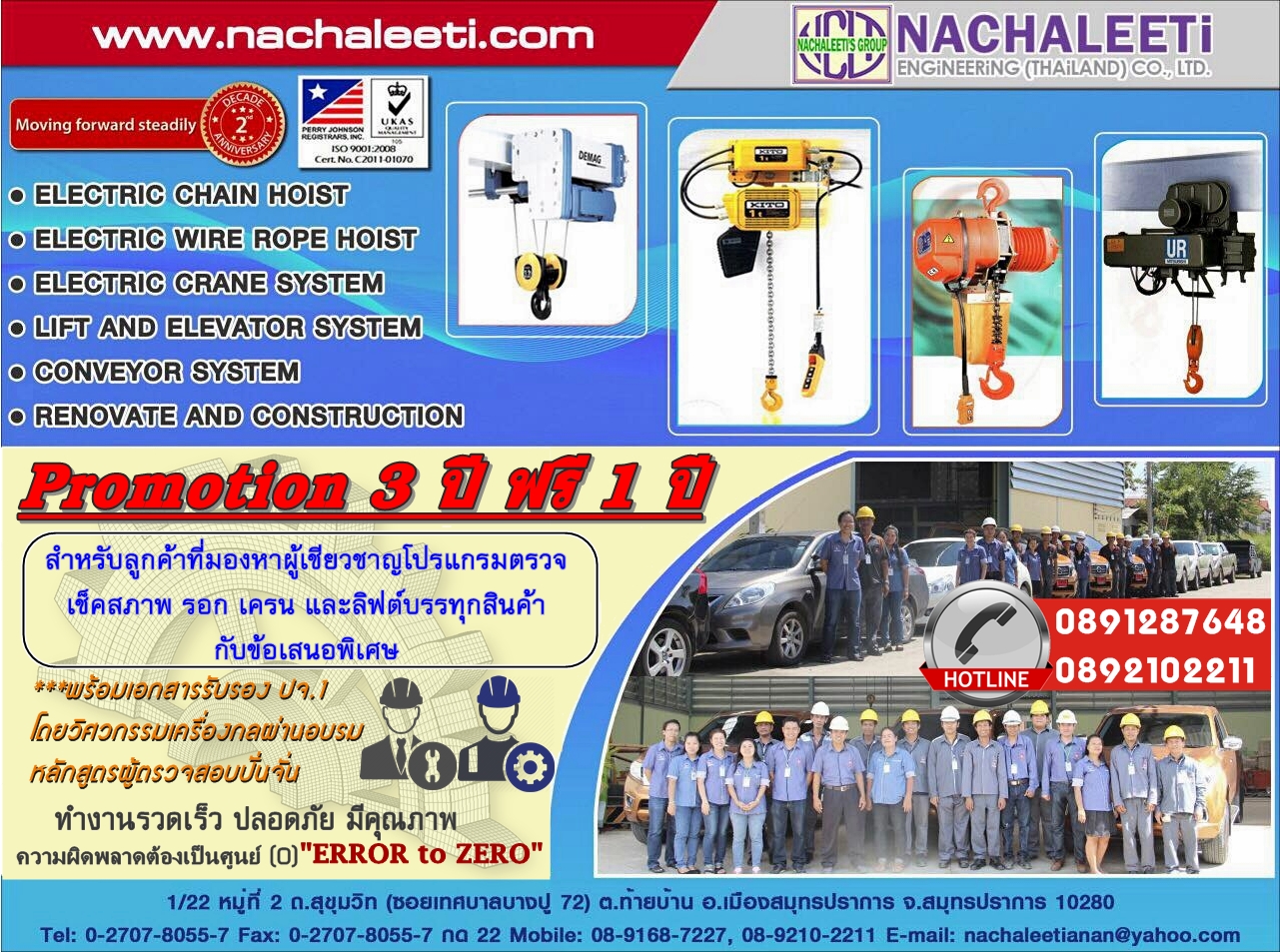 เครน ลิฟต์ลิฟท์ #821 | 183.88.97.*** 21 ก.ค. 2559, 11:45 Test load พร้อมกับส่งมอบงานเรียบร้อยกับงาน Underslung Crane 500kg ขอขอบคุณทีมงาน NACHALEETi'S GROUP ทุก ๆ ท่านที่ได้ร่วมมือร่วมใจส่งมอบงานได้ตรงเวลา ทั้งนี้ขอขอบพระคุณลูกค้าบริษัท THAI TGK INDUSTEY.CO.,LTD ที่ให้ความไว้วางใจเรา เราสัญญาว่าจะรักษามาตรฐานงานและพร้อมจะพัฒนาให้ดียิ่ง ๆ ขึ้นไป บริษัท นะชาลีติ คอร์เปอร์เรชั่น จำกัด 1/22-23 หมู่ 2 ถนนสุขุมวิท ตำบลท้ายบ้าน อำเภอเมืองสมุทรปราการ จังหวัดสมุทรปราการ 10280 Tel : 0-2707-8055-57 Fax : กดต่อ 22 HOTLINE: คุณอนันต์ 089-1287648 ID LINE infinityanan EMAIL: cranenacha@gmail.com www.เครน.com #conveyor #สายพานลำเลียง #รับตรวจเช็คเครนเหนือศีรษะ #รับตรวจเช็ครอกสลิง #รับตรวจเช็ครอกไฟฟ้า #รับตรวจเช็คเครนเหนือศีรษะประจำปี #รับซ่อมรอกเครนเหนือศีรษะทุกยี่ห้อ #Underslung Crane ไฟล์แนบ ขนาด 1015262 bytes