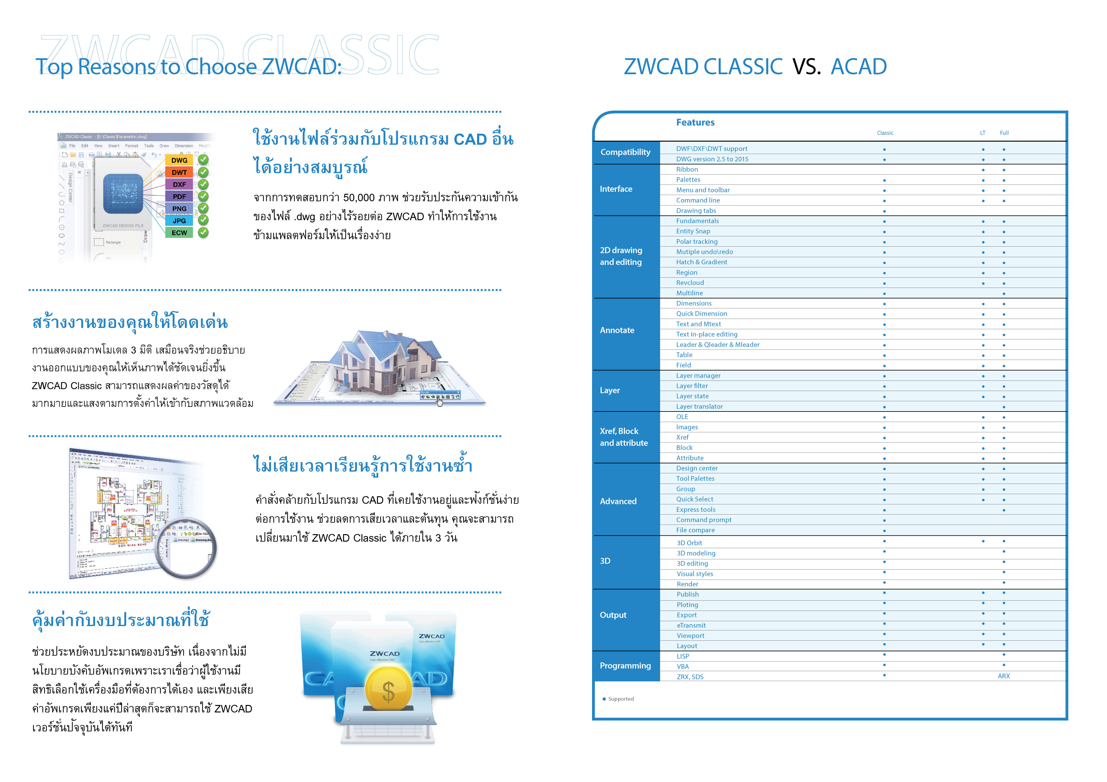 คำอธิบาย : ZWCAD เป็นโปรแกรม cad ออกแบบ มีทั้งรุ่น Standard (2มิติ) และ Professional (2 และ 3 มิติ)