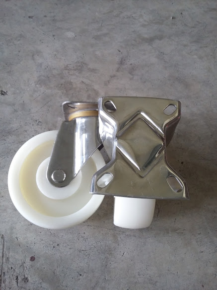 เป็นล้อไนล่อน สลักและน็อต เป็นสแตนเลสทั้งหมด แม่เหล็กดูดไม่ติด