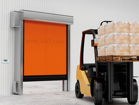 Design: DoorHan High-Speed Roll-Up Door curtain are made from durable polyester (900 g/m2) with embedded vision panels to provide a view of areas on the opposite side of the doors. Door side frames and tracks are made from galvanized steel, or can be custom-ordered in stainless steel and painted various RAL colours. Modular construction allows easy interchange of door parts.
